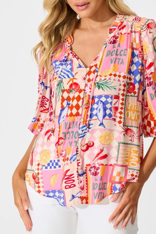 St Frock Annelie Top In Multi Conversational Print | Women Casual