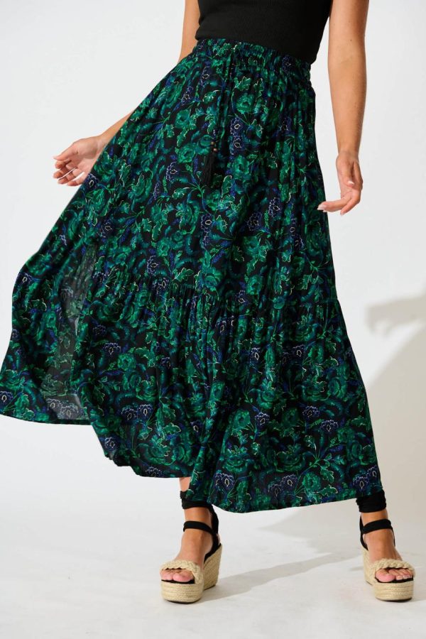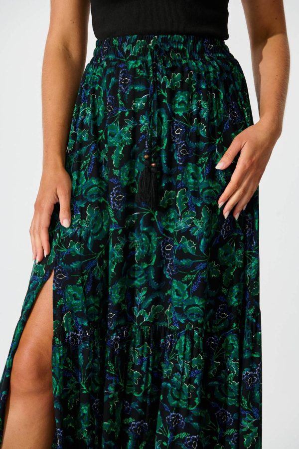 Mesmerise everyone’s eyes with our Bilboa Maxi Skirt! The perfect summer skirt features a pull on style, elasticised waist, drawstring waist tie and front splits. Finish the look with a black cami top, a pair of wedged heels and a sequin clutch to give that shimmer!