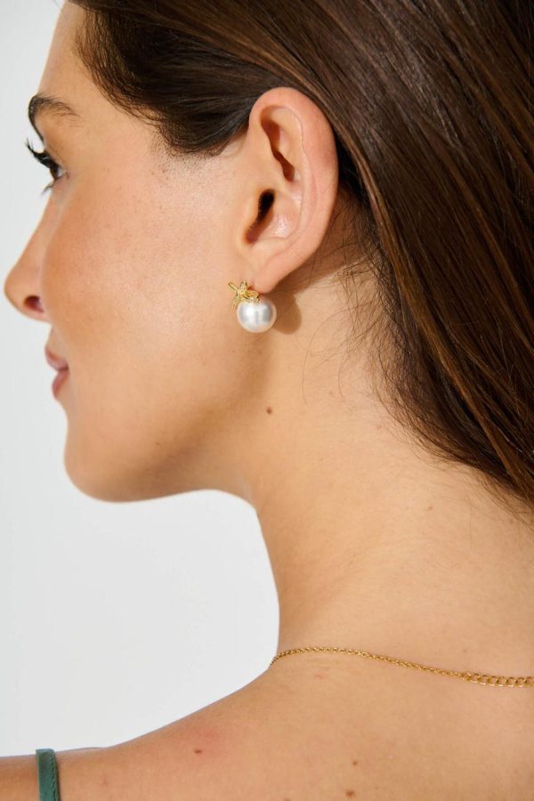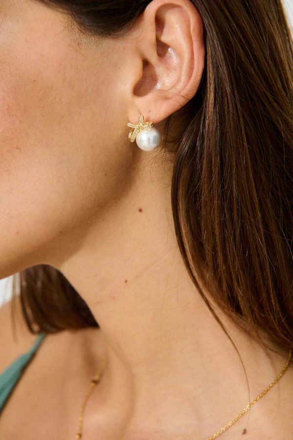 Immerse yourself in the timeless allure of our Halley Earrings. Featuring lustrous pearls cradled within delicately crafted ribbon studs. The intricate design radiates sophistication and modern elegance!