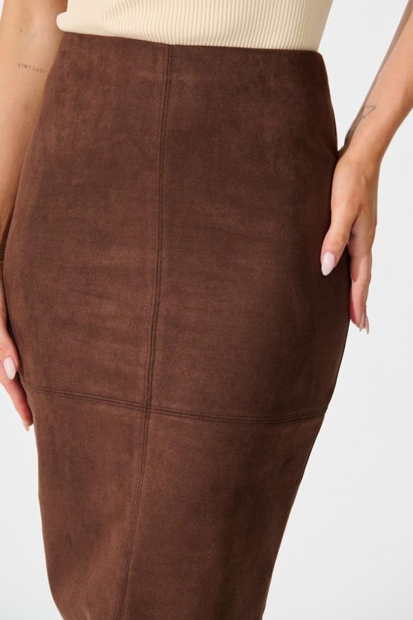 St Frock Hold Tight Midi Skirt In Brown Suedette | Women Skirts & Shorts