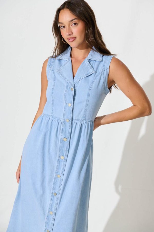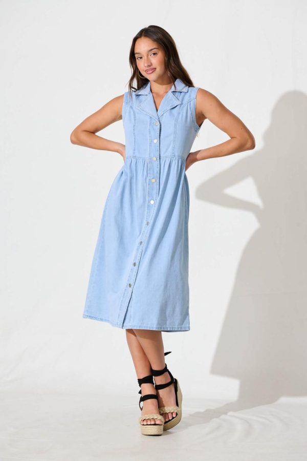 St Frock In Love Midi Shirt Dress In Light Blue Denim | Women Denim
