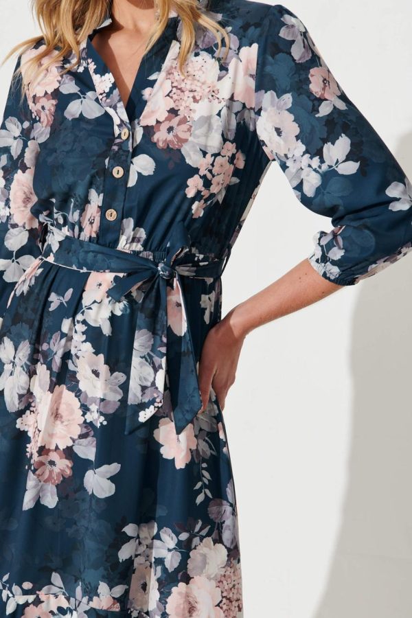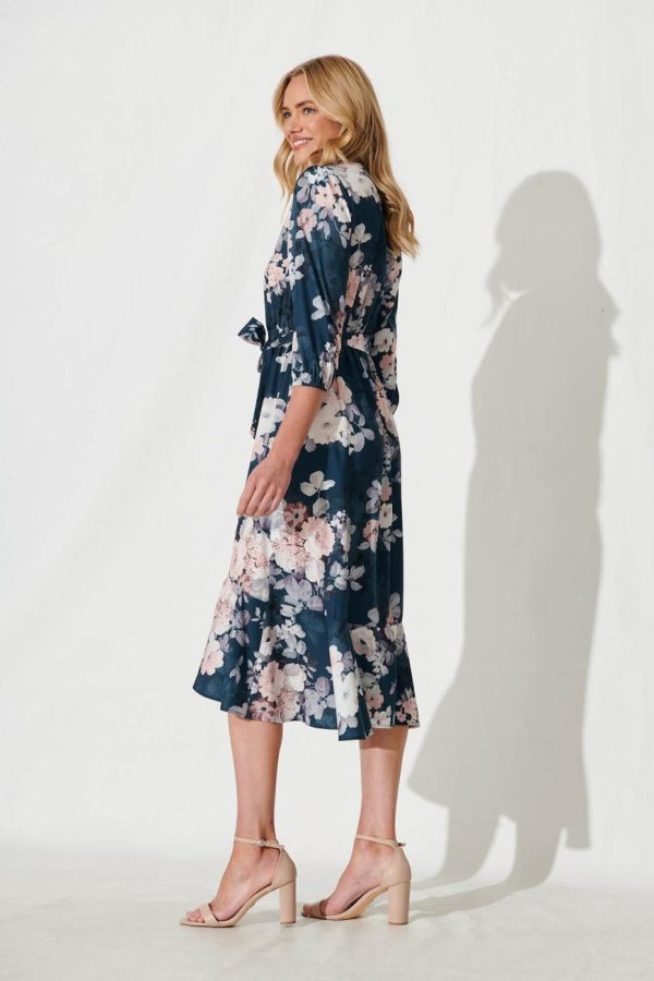St Frock Jemimah Midi Dress In Teal With Blush Floral Print | Women Party