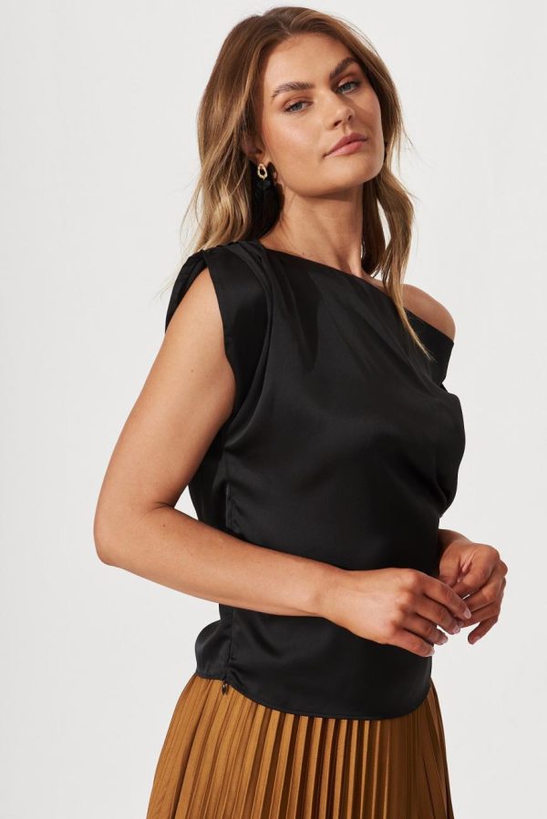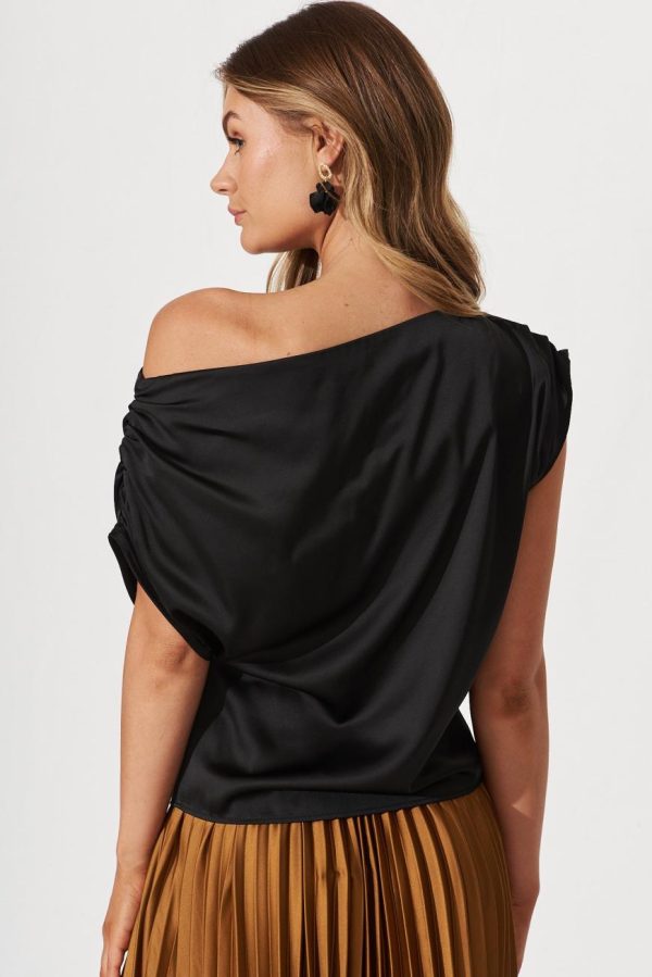 St Frock Liana Off Shoulder Top In Black Satin | Women Party & Occasion
