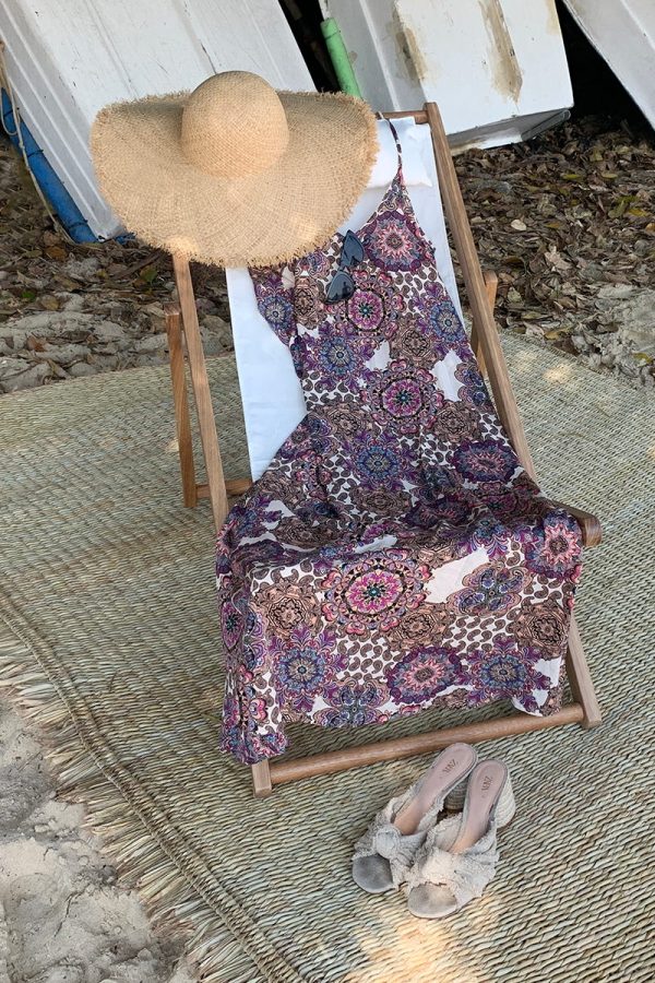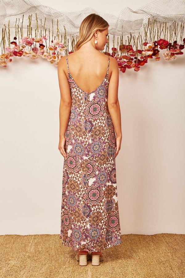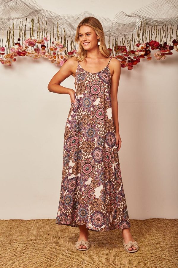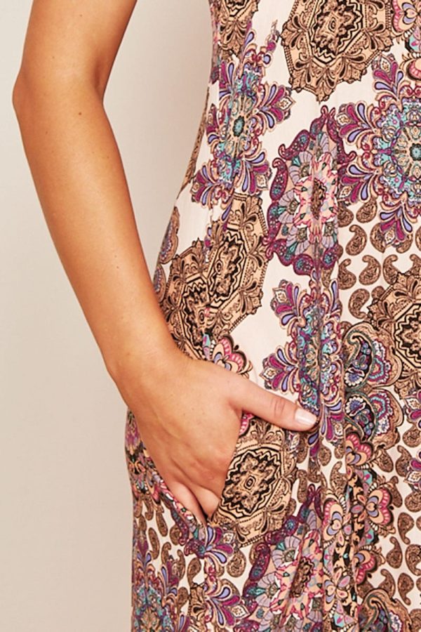 St Frock No Scrubs Maxi Dress In Cream With Purple Paisley | Women Casual