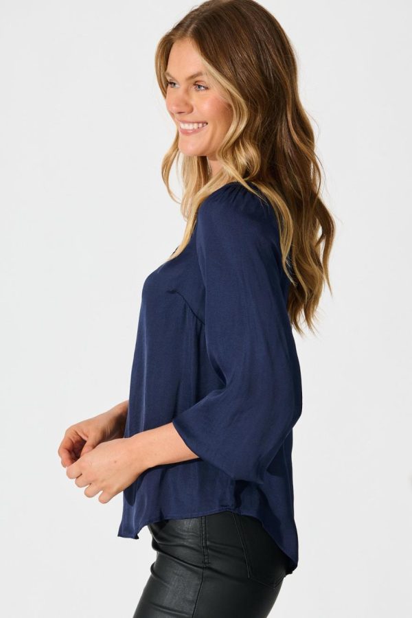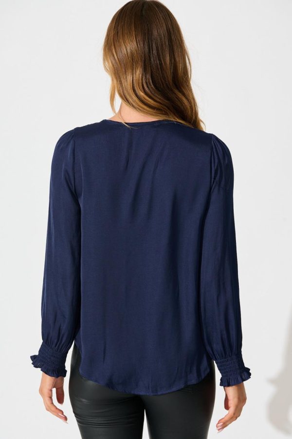 St Frock Pristine Top In Navy Satin | Women Workwear