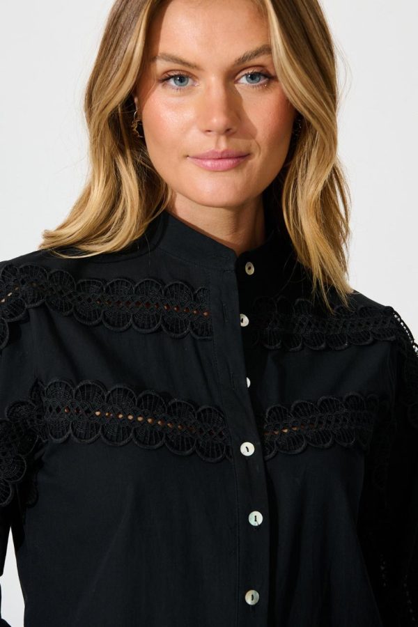 St Frock Skyline Shirt In Black Cotton | Women Workwear
