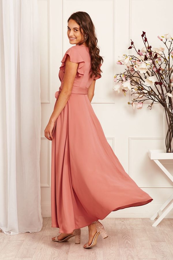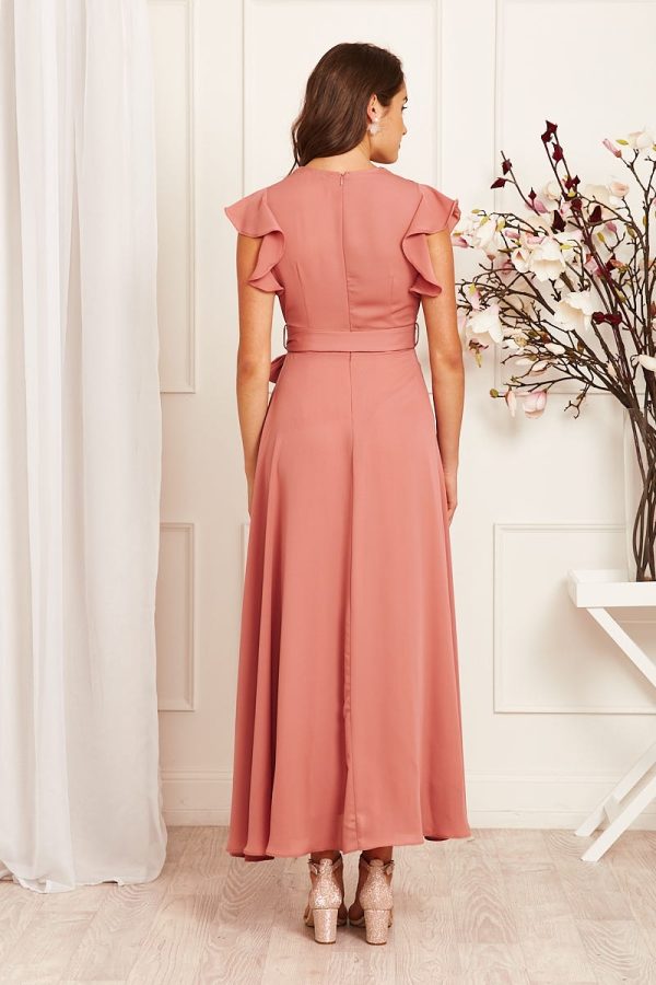 The Wynter Chiffon Dress in Dusty Rose is a gorgeous, dreamy choice for your next special occasion! This dress features a pleated cross-over neckline and cinching waist tie before falling into a flowing maxi length skirt with split. Simply add dazzling jewellery and nude heels for an elegant look!